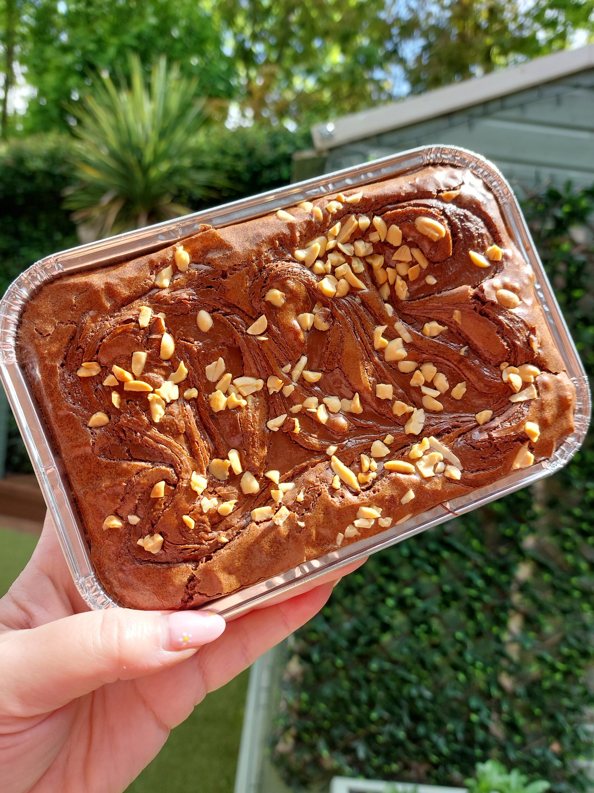 Gooey Brownie with generous swirls of Nutella, Milk Chocolate Chunks and a scattering of nuts. Tray size 7x5". Minimum weight of 350g Price includes delivery. Contains Nuts